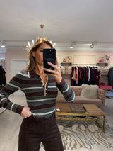 DELVINE RIBBED STRIPE BODYSUIT BROWN