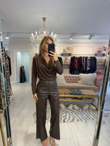 EFFIE CRYSTAL COWL NECK TOP BROWN