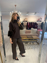 JESS FAUX FUR TRIM SLEEVE JUMPER BROWN