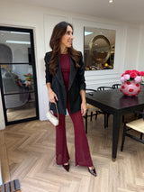 VIVIENNE SPARKLY FLARE TROUSER BURGUNDY