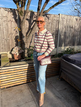 The Giselle Stripe Cardigan in Wine and Pink offers a refined take on a classic silhouette. Crafted from a soft knit fabric, it features a collared neckline and a flattering button-down front. The elegant stripe pattern adds subtle visual interest, while the rich wine and delicate pink hues create a sophisticated color palette. Perfect for layering over both casual and dressier outfits, this cardigan combines comfort with timeless style for versatile wear throughout the seasons.