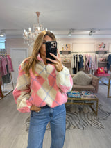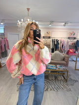 Elevate your casual wardrobe with this refined argyle fleece quarter zip in a sophisticated pink hue. Crafted for comfort and style, this piece features a classic argyle print that adds visual interest to everyday layering. The quarter zip design allows for easy temperature adjustment, while practical side pockets provide convenient storage. Perfect for transitional seasons or layering over your favourite pieces, this fleece combines timeless pattern work with modern functionality. An essential addition to any discerning wardrobe.