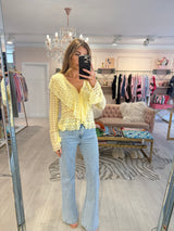 CHELSEA FINE KNIT FLUTED SLEEVE CARDIGAN YELLOW