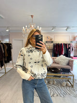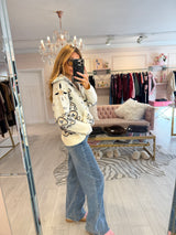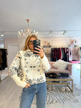 ISLA ZIP THROUGH PATTERNED CARDIGAN CREAM