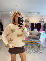 NATALIE SEQUIN BOW JUMPER OATMEAL