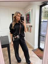 Elevate your everyday wardrobe with this refined trouser set, featuring a long-sleeve jersey top crafted from luxuriously soft fabric. The rugby-inspired collar adds a touch of understated sophistication, while the relaxed silhouette ensures all-day comfort. Paired with tailored straight-leg joggers finished in a rich chocolate tone, this set strikes the perfect balance between casual ease and polished elegance. Practical drawstring waist adjustment and functional pockets complete this versatile piece, ideal for effortless styling whether you're working from home or stepping out for a relaxed social occasion.