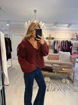 BODI FRINGE CARDIGAN BURGUNDY