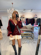TARA WOOL MIX ARGYLE CARDIGAN WINE