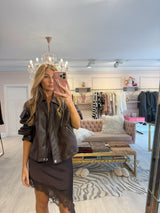 JUNO FAUX LEATHER BOMBER JACKET CHOCOLATE