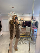 FERN FAUX MONGOLIAN FUR BELTED GILET BROWN