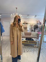 The Lucia Duster Coat in beige offers a luxurious combination of comfort and elegance. Crafted from super soft fabric, this coat drapes beautifully with a flattering V-neckline that enhances your silhouette. Gold button details add a touch of refined glamour, while the faux front pockets maintain a sleek and streamlined look. Perfect for layering over both casual and dressier outfits, this duster coat is the ideal choice for a sophisticated, polished style throughout the seasons.