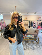 SLOANE FUNNEL NECK BIKER JACKET BLACK