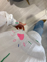 Elevate your everyday wardrobe with this cotton relaxed white shirt, adorned with delicate love heart embroidery that adds a subtle romantic touch. Crafted for versatility, it transitions effortlessly from casual daywear to polished evening looks. The timeless white base pairs beautifully with any ensemble, while the thoughtful embroidered detail brings understated elegance and personality to your collection. A modern essential with sentimental charm.