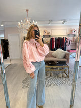 LUNA CROPED EMBROIDERED BLOUSE PINK