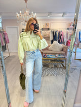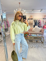 PAIGE EMBROIDERED CROPPED BLOUSE GREEN STRIPE