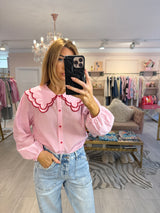ROSIE STRIPE PETER PAN CONTRAST COLLAR SHIRT PINK